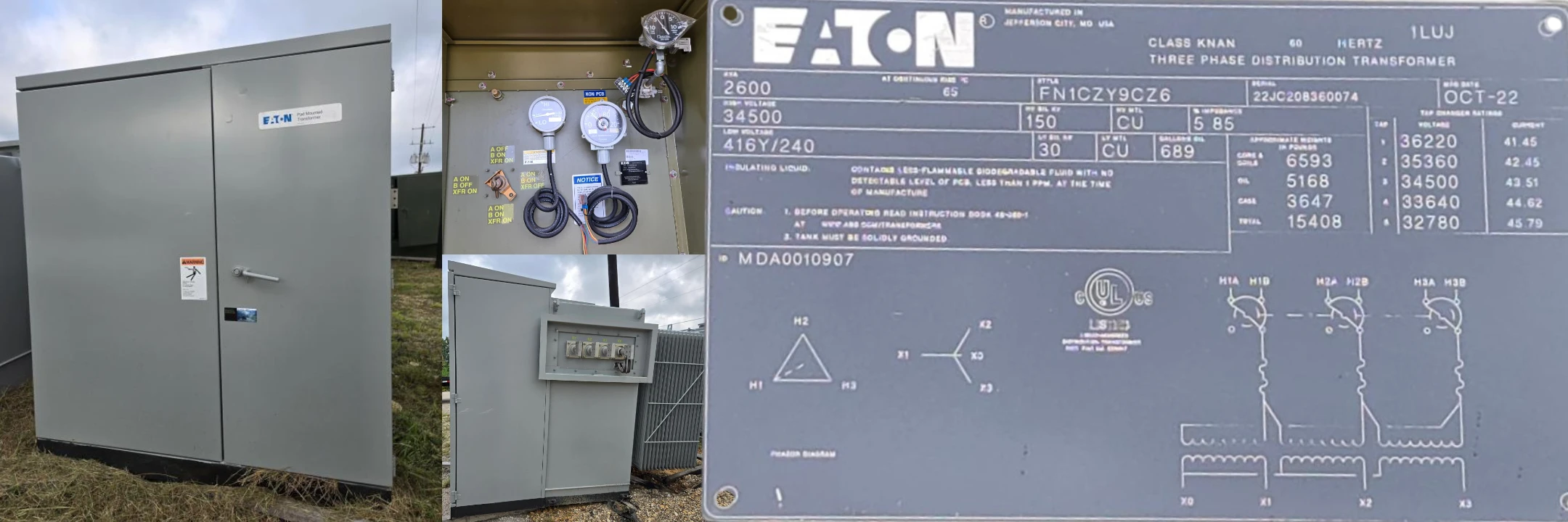 Damaged 2,600 kVA Eaton Pad Mounted Transformer; HV 34,500; LV 416Y/240; FR3; Copper; Unused; SN 22JC208360068Available Equipment