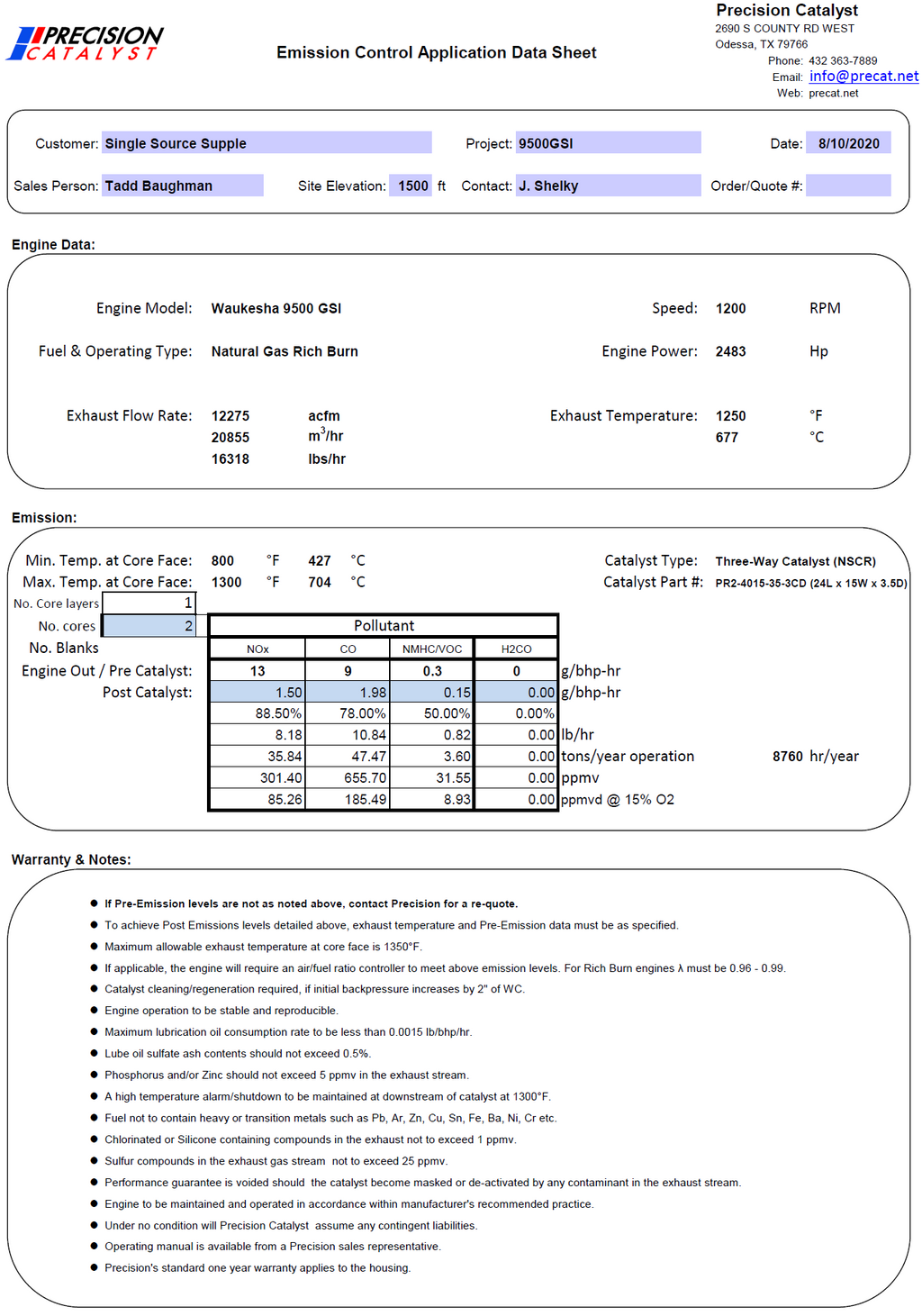 Emissions System: Catalyst Installed (Report Available – CARB Ready)