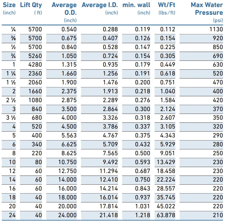 Weight: ~369 lb/stick, ~1,107 lb/bundle
