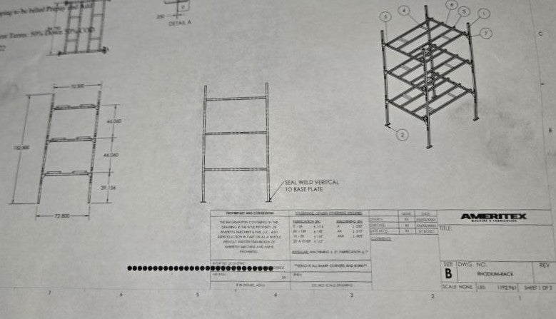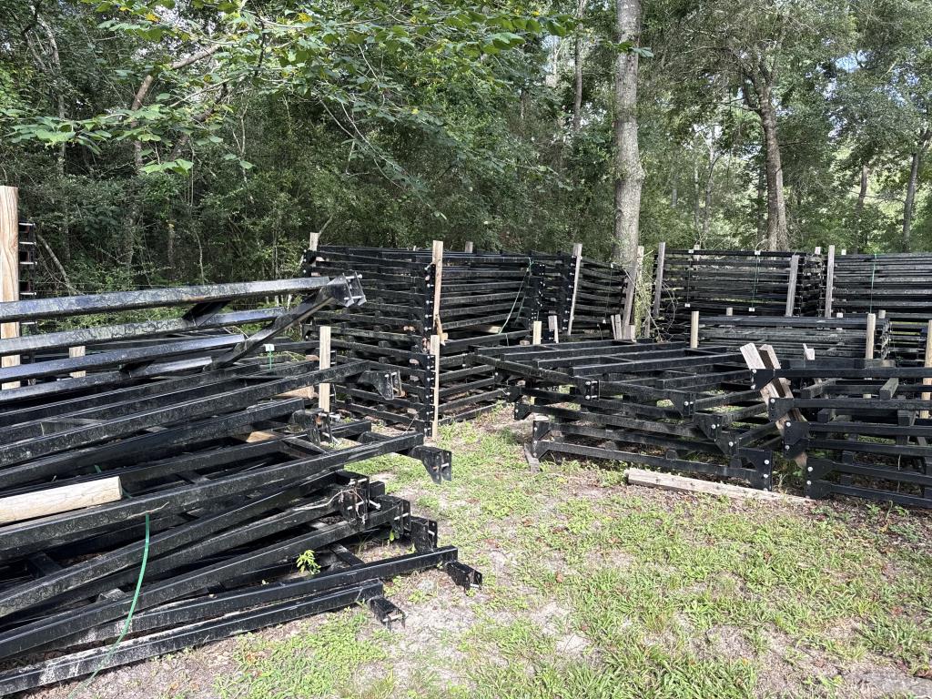 New / unused high-quality powder coated steel tank racks to hold 6 of the marine grade aluminum 5052 immersion tanks in pairs across 3 levels. Designed by Rhodium for their generation 4 immersion cooling bitcoin mining in Texas.